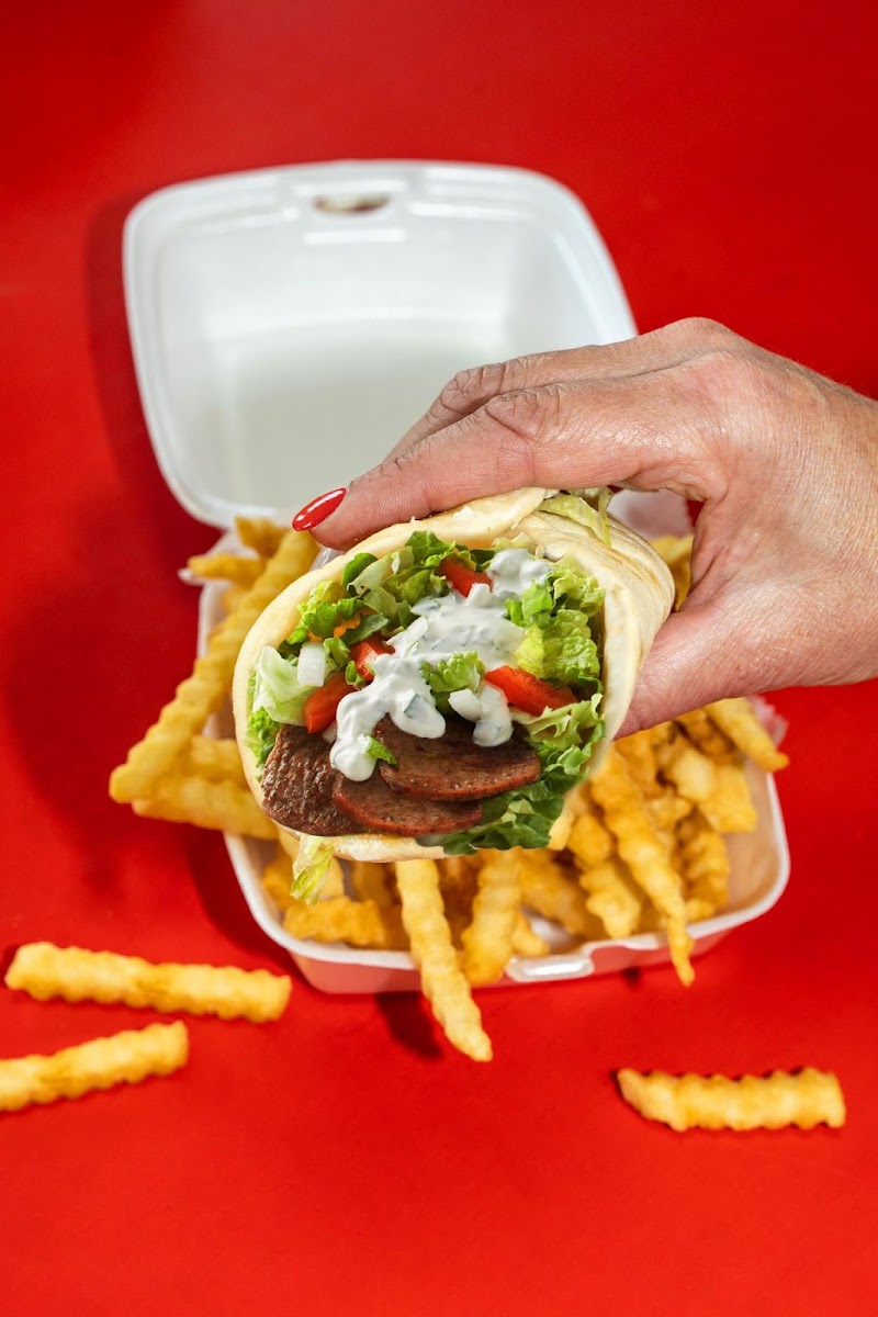 ................................US$12.27Grilled gyro meat topped with fresh greens, tomatoes, sliced onions, and cucumber tzatziki sauce all wrapped in a warm soft pita. Served with Fries and a Drink.